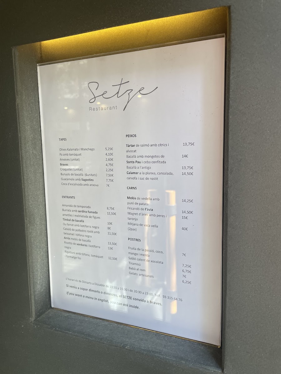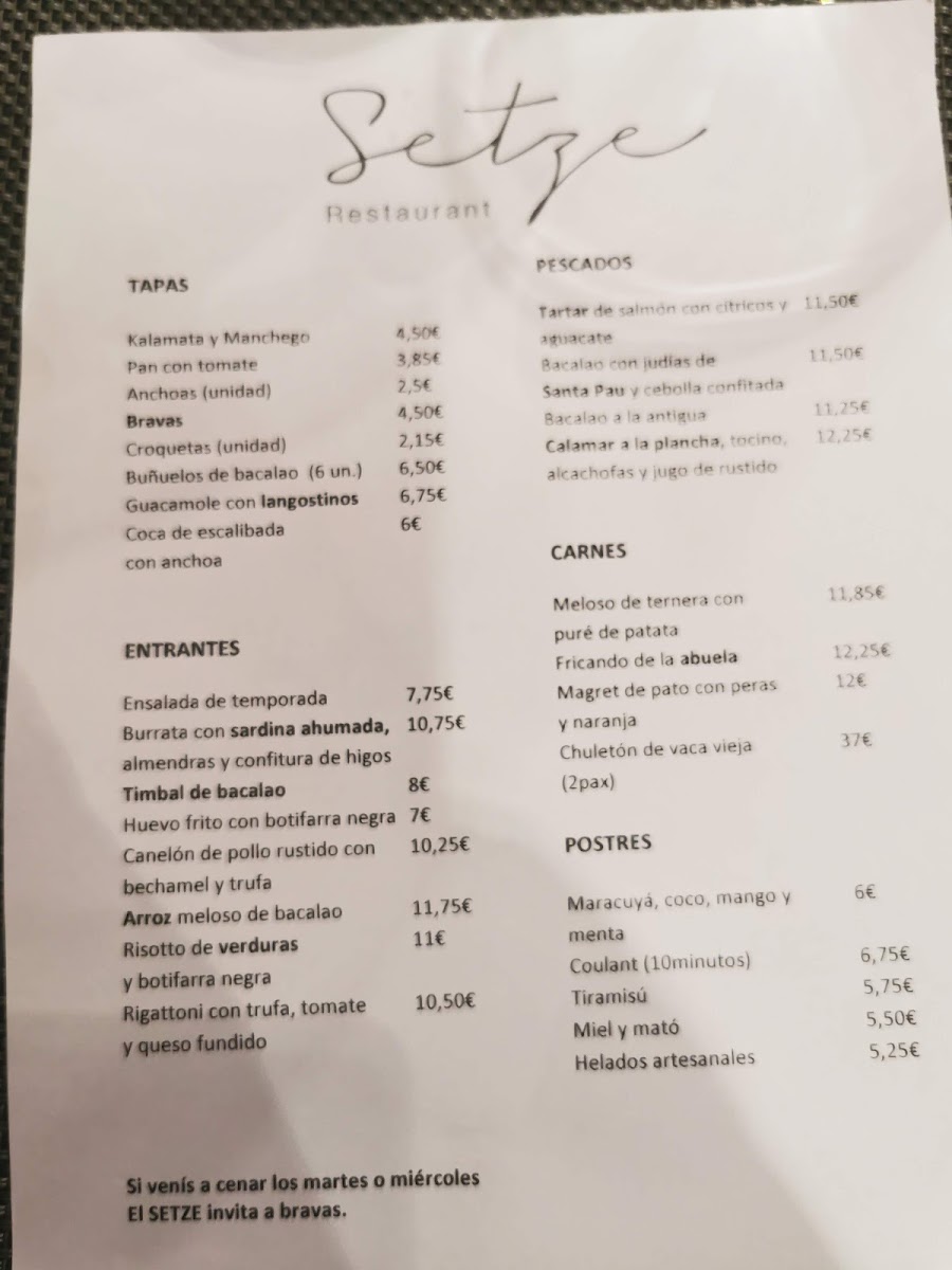 Welcome to Restaurant Setze, a charming Mediterranean gem located at Carrer de Galileu, 316, Les Corts, Barcelona. This intimate eatery is a must-visit for those seeking authentic local flavors in a bustling city. Customers rave about the superb quality of the dishes, with highlights including the highly recommended vaca vieja, expertly cooked to perfection, and the exquisite magret d'ànec amb pera i toronja, which promises a delightful culinary experience.